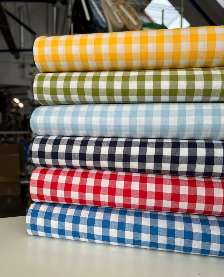 It’s made using a balanced plain weave, where colored and white yarns cross each other to create a crisp checkered design.